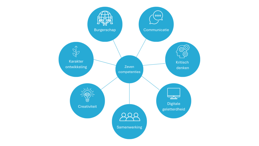 In ieder project staan, naast de lesstof, verschillende leercompetenties centraal. Je werkt in het ene project bijvoorbeeld aan de samenwerking of aan kritisch denken. In het volgende project staan burgerschapsvorming en karakterontwikkeling centraal. We helpen jou om de volgende competenties te ontwikkelen: